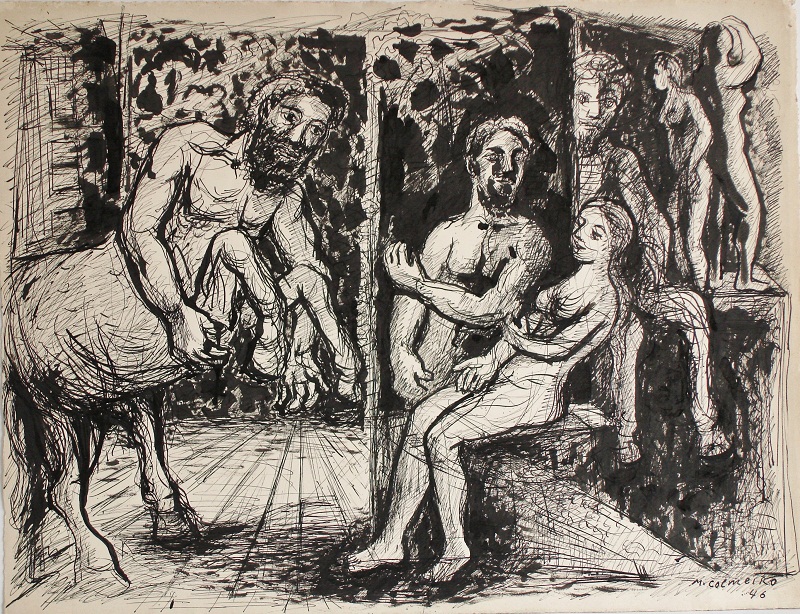En el Balcon 1941, Tintapapel, 25×32,5 cm Emilia, 1942, 32,5 x 25 cm Recuerdos, 1943, Tintapapel, 23×19 cm Figuras , 1943, Lápiz papel , 22x 14 cm Carpeta de Pintor, 1945, Tintalápiz, 28×38 cm . Mitologia, 1946, Tintapapel, 50×65 cm Tres Gracias, 1949, Tintapapel, 50×62,5 cm Bañista, 1949, Tintalápiz, 24×32 cm Paris Avenue du Maine, 1949 tinta papel 39×50 cm